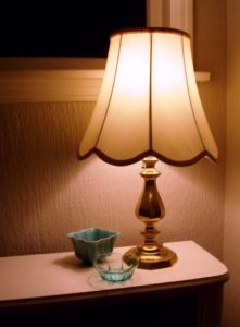A corner of my living room needed some extra light in the evening but I don’t want to spend a whole lot of money on a lamp until I find exactly what I’m looking for, so I scouted out a couple of flea markets and secondhand stores.